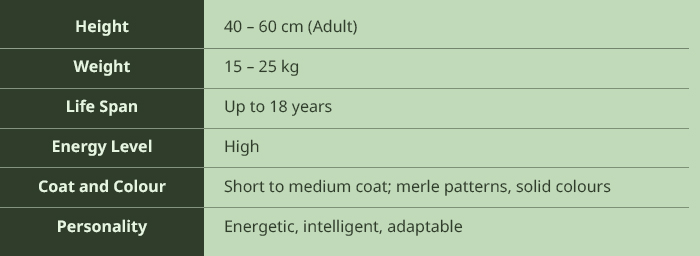 The Koolie is a versatile herding breed that has existed in Australia since the early 19th century. They get their name from Collies, as they are the crossbreeding of smooth-coated blue merle Collies with black and tan Collies. Known for their endurance and adaptability, Koolies excel in both farm work and agility sports.