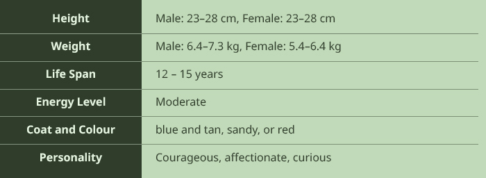 One of the smallest working terriers, the Australian Terriers are tough, spirited, and surprisingly fearless Australian dogs. They were the first Australian-bred dog to be officially recognised and shown in competition. Originally bred to control vermin like rats and snakes, they are now cherished as companion dogs thanks to their affectionate nature and adaptability. With moderate to high energy and moderate grooming needs, they are suitable for both apartment living and houses with yards.